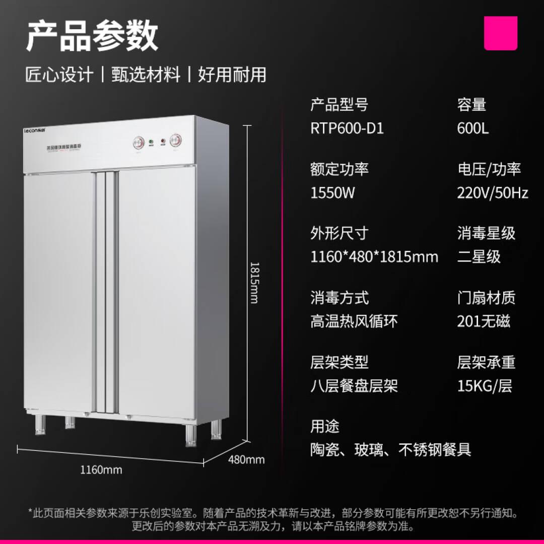 乐创(lecon)消毒柜商用高温热风循环双开门消毒柜大容量餐饮酒店餐厅食堂饭店消毒碗柜 RTP600-D1