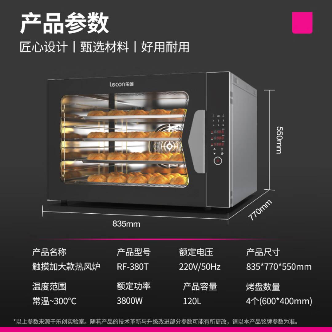 乐创(lecon)热风炉烤箱商用 私房烘焙面包月饼马卡龙热旋风烤炉 热风循环多功能电烤箱 RF-380T