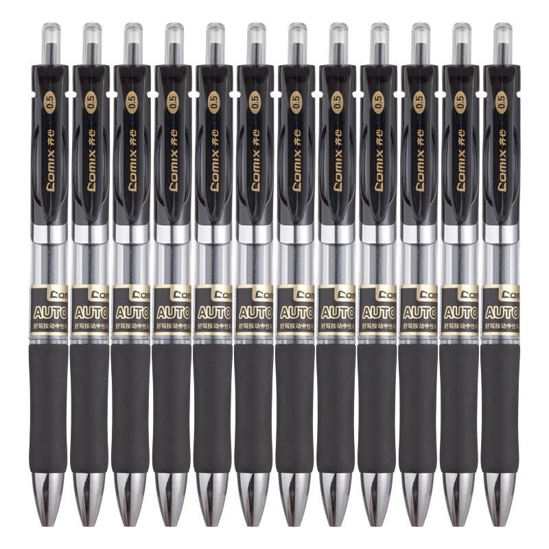 齐心 K3511 舒写按动中性笔 0.5mm 黑 12个装