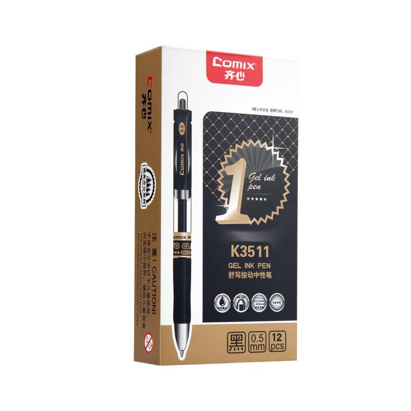 > 齐心 K3511 舒写按动中性笔 0.5mm 黑 12个装