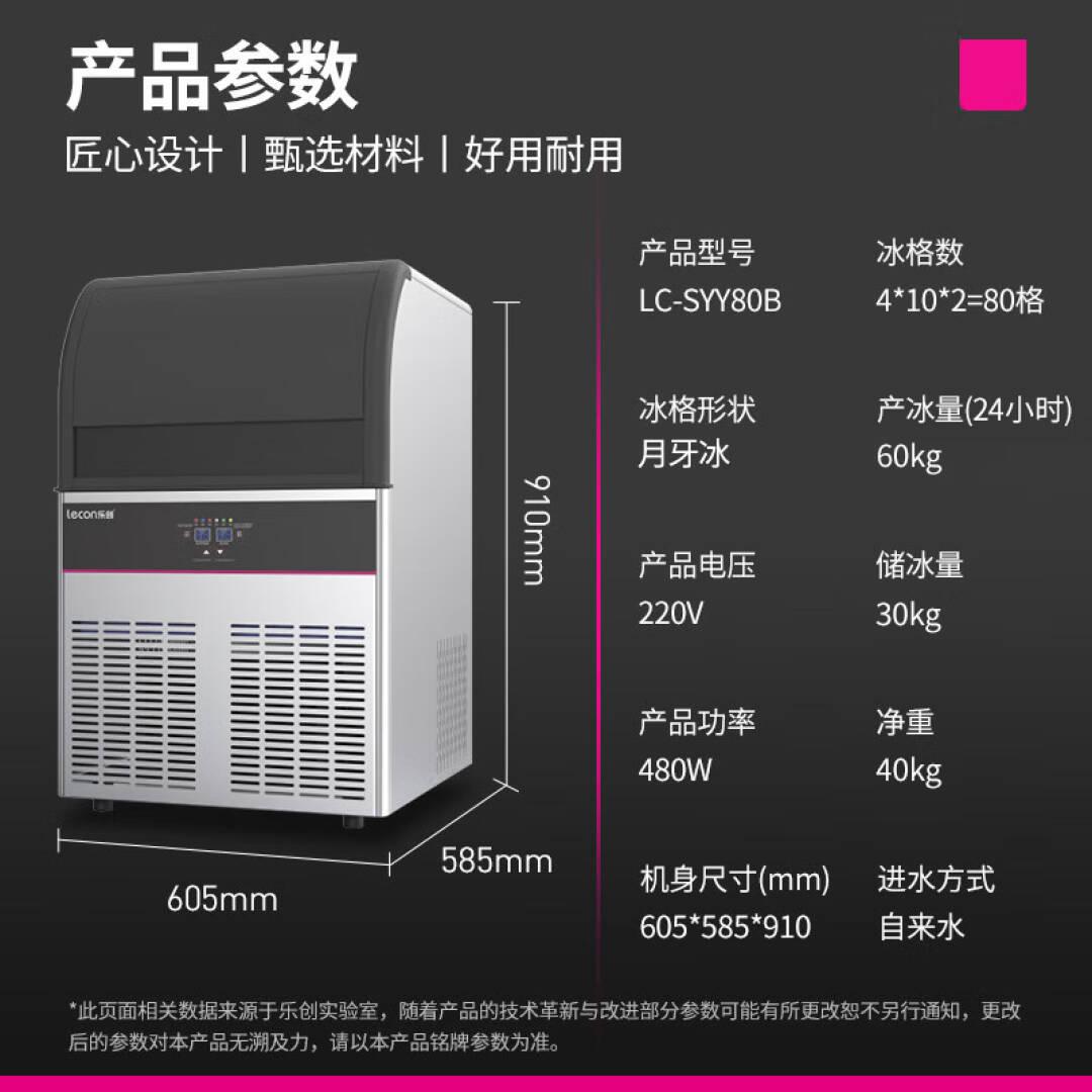 乐创(lecon)制冰机商用 奶茶店全自动冰块机器酒吧台KTV适用月牙冰LC-SYY80B【一价无忧】