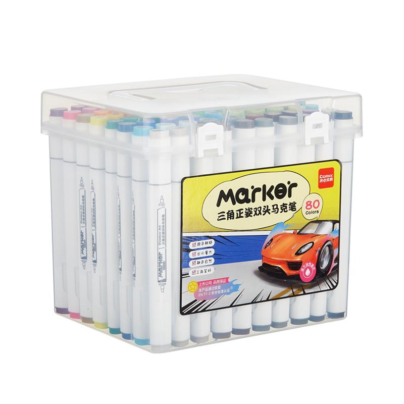 齐心 ZYMK07-80 大三角杆双头马克笔 1.0-6.0mm 混色 80色/套 单位:套