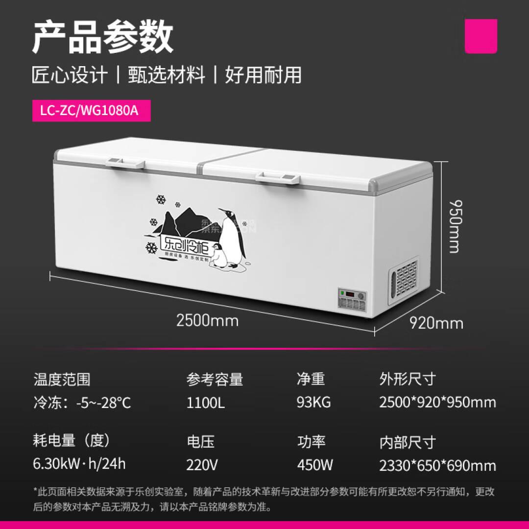 乐创(lecon) 1100升卧式冰柜冷冻单温家商用冰柜强冷速冻餐馆后厨大容量冷柜双压缩机LC-ZC/WG1080A