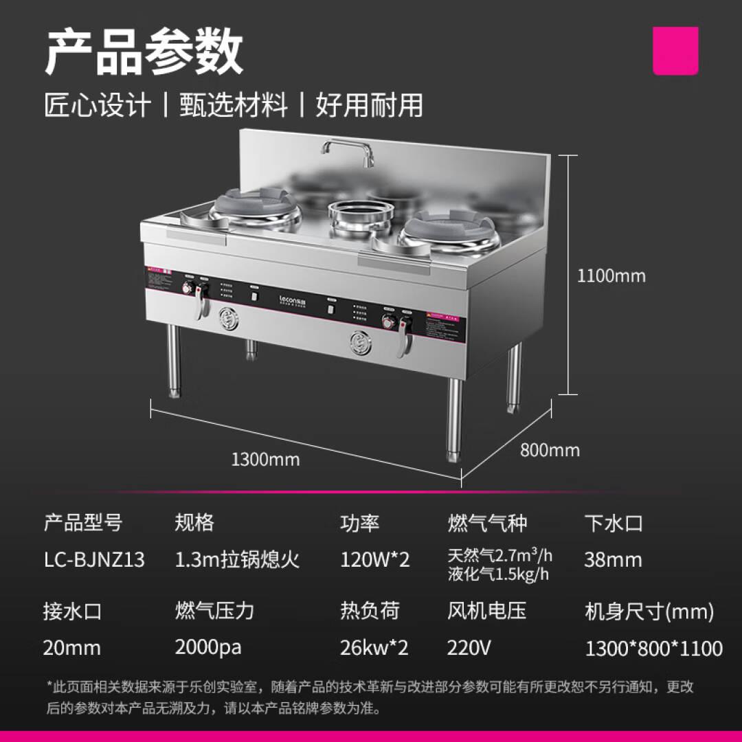乐创(lecon)商用燃气灶节能灶猛火灶液化气天燃气单灶双灶厨房餐厅炒菜专用1.3米双炒单温 LC-BJNZ13
