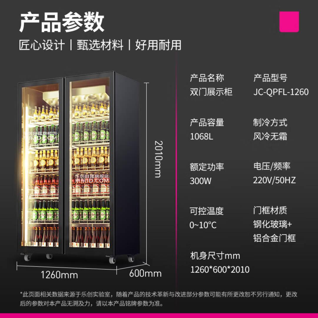 乐创(lecon)展示柜冷藏啤酒柜商用网红饮料柜风冷便利店酒吧三光可调企业采购 JC-QPFL-1260