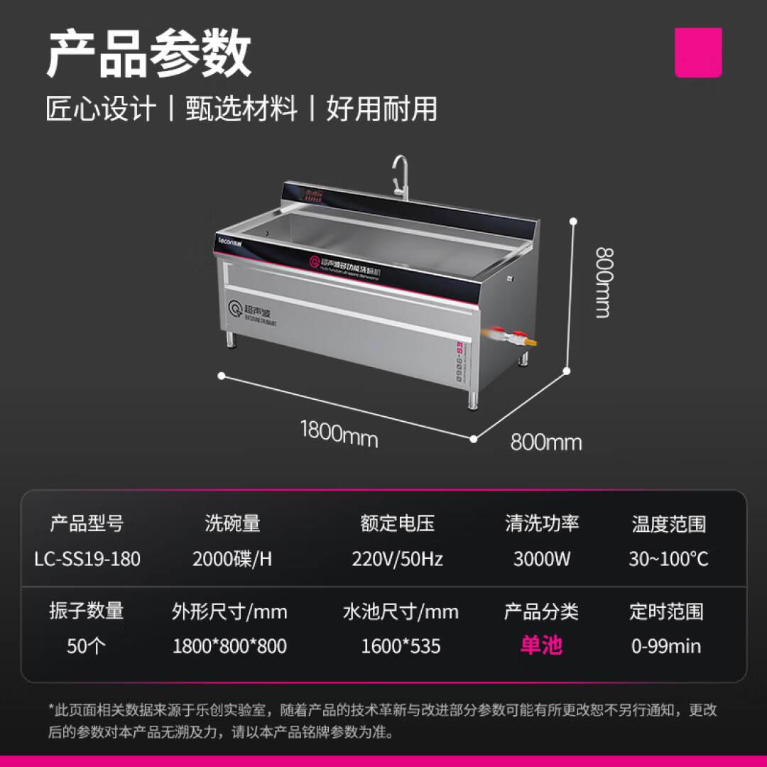 乐创 洗碗机商用超声波全自动大型家用洗碟机酒店用1.8米超声波单槽 LC-SS19-180