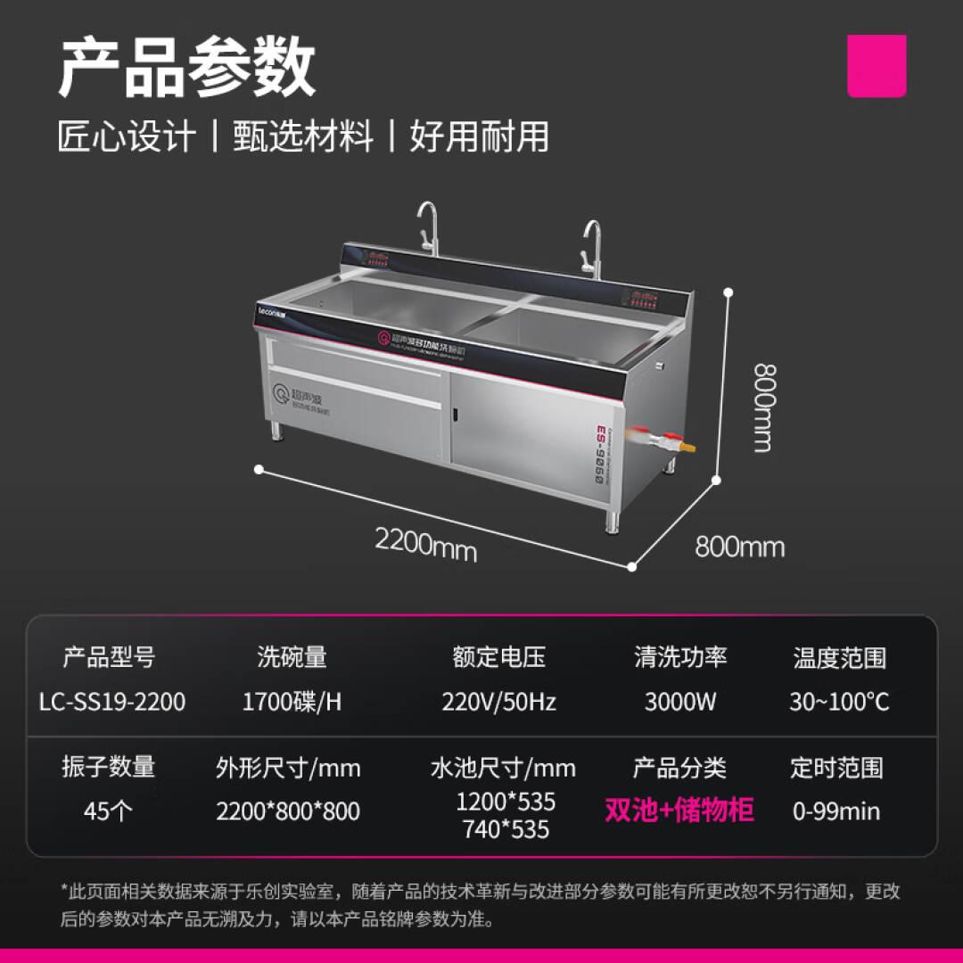 乐创 商用洗碗机超声波全自动大型家用洗碟机酒店用2.2米双槽过水+清洗+储存 LC-SS19-2200