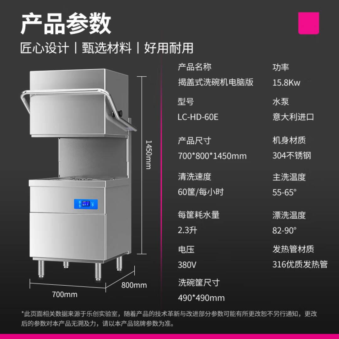 乐创(lecon)商用洗碗机揭盖式全自动刷碗机企业食堂酒店餐厅专用【包安装】单泵电脑款 LC-HD-60