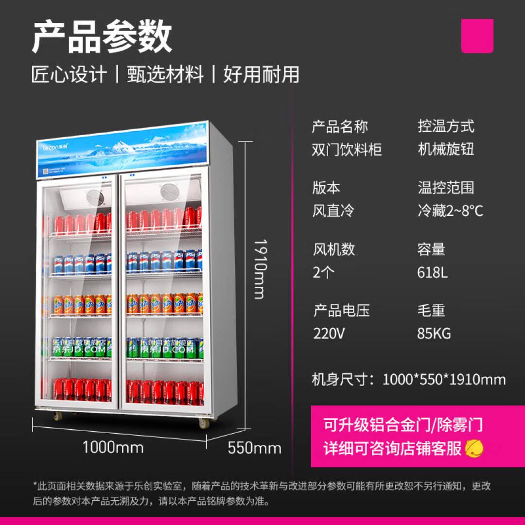 乐创(lecon)展示柜冷藏柜商用保鲜柜便利店冰箱冰柜饮料双开门直冷LC-ZSG02 618FZ B1 单位:台