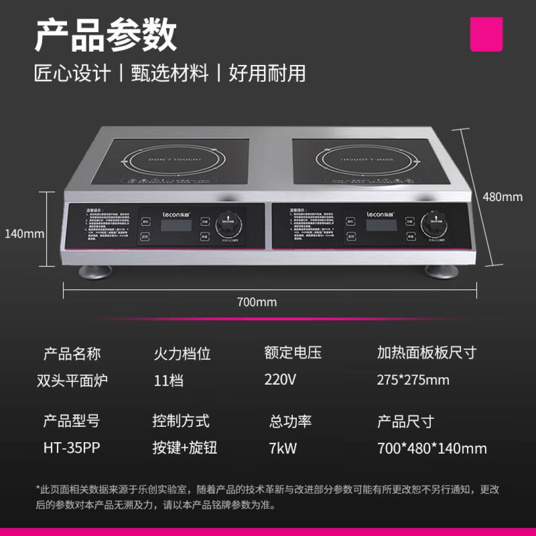乐创lecon 商用电磁炉大功率3500w电灶双头平面爆炒多眼大功率电磁灶LC-HT-35PP 单位:台