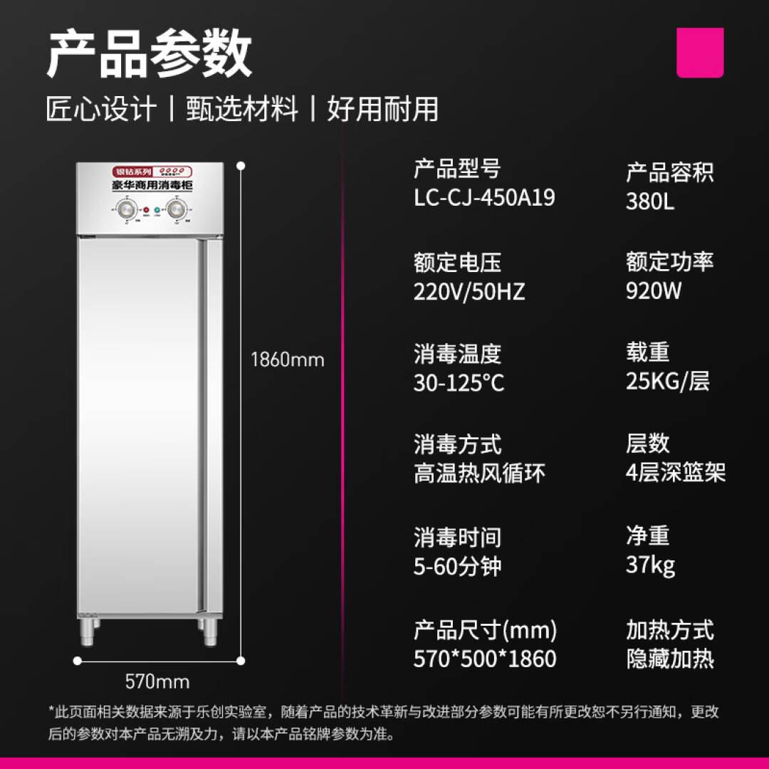 乐创(lecon)商用消毒柜热风循环 酒店厨房碗筷烘干用 双开门不锈钢消毒碗柜 LC-CJ-450A19