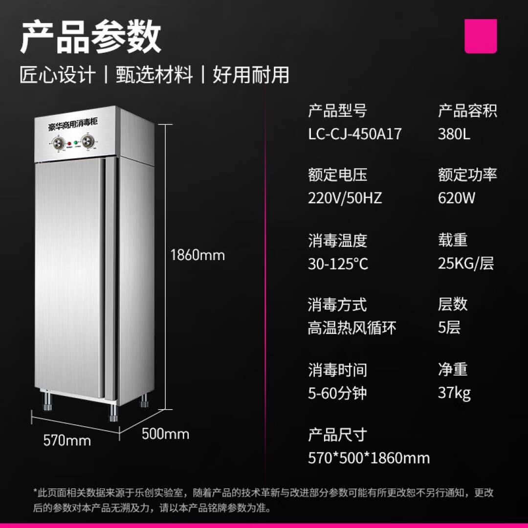 乐创(lecon)消毒柜热风循环 商用立式 商用厨房碗筷烘干 单门不锈钢消毒碗柜 LC-CJ-450A17