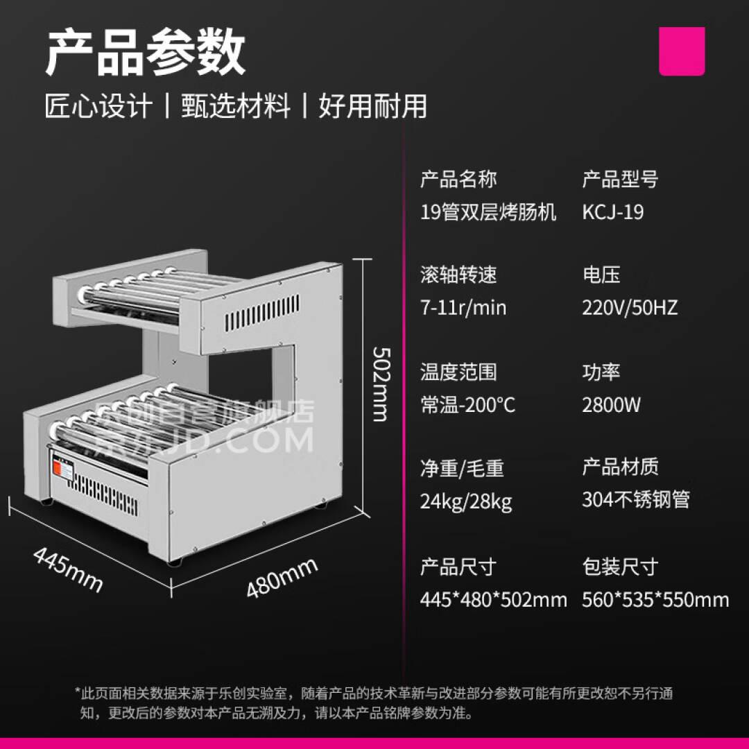 乐创(lecon)商用烤肠机热狗机商用小吃店全自动台式烤火腿肠机 19管304烤管 KCJ-19