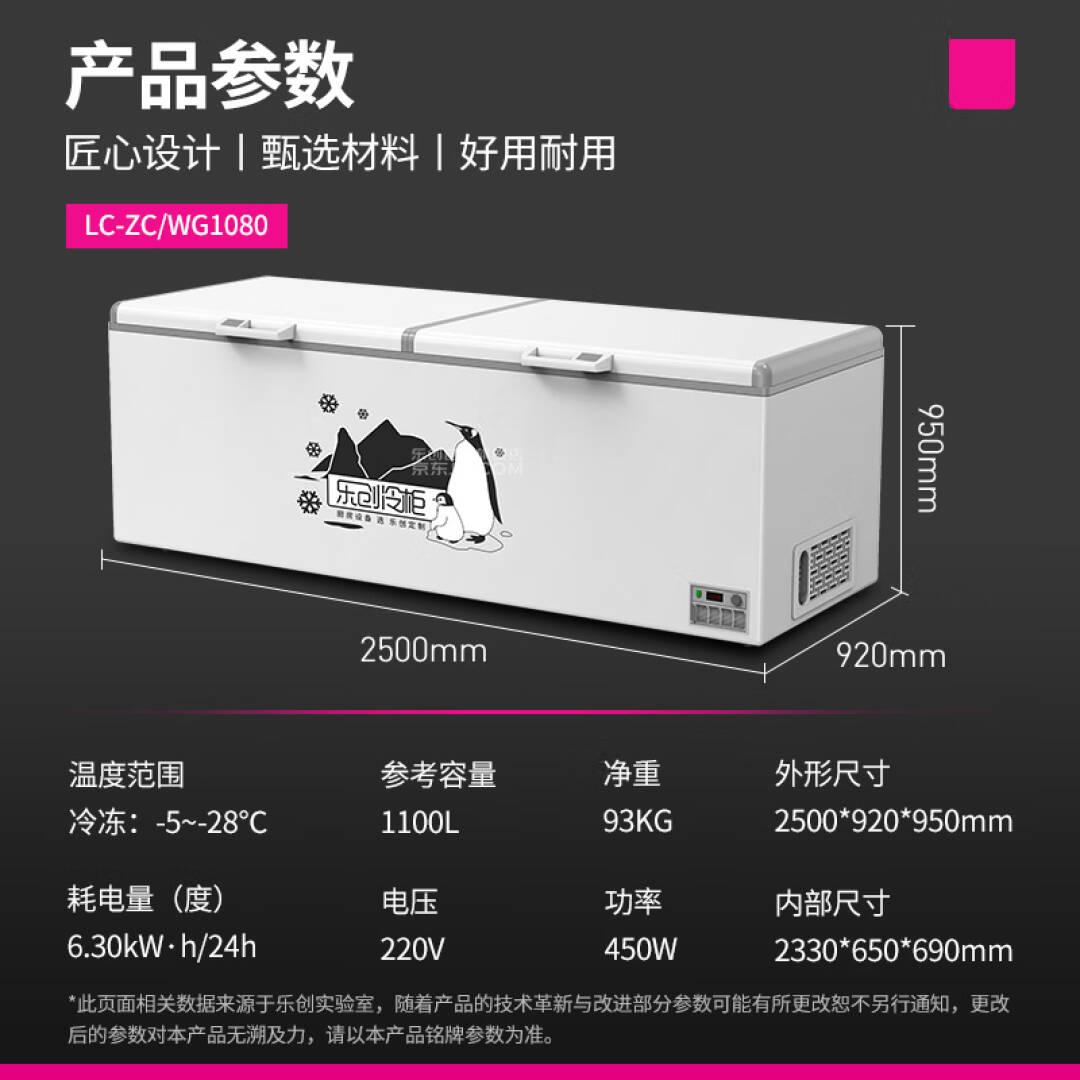 乐创(lecon) 1100升卧式冰柜冷冻单温家商用冰柜强冷速冻餐馆后厨大容量冷柜LC-ZC/WG1080