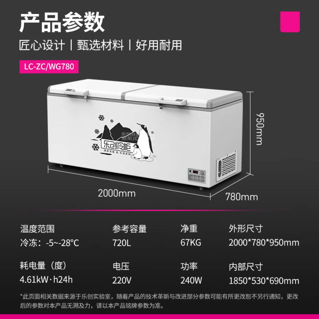 乐创(lecon) 720升卧式冰柜冷冻单温家商用冰柜强冷速冻餐馆后厨大容量冷柜LC-ZC/WG780