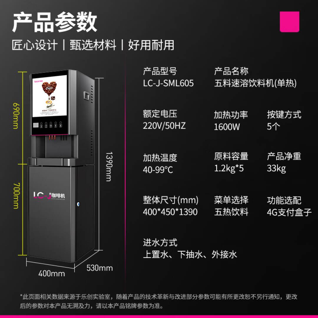 乐创(lecon)速溶咖啡机商用饮料机奶茶机全自动多功能 五口味热饮立式 LC-J-SML605