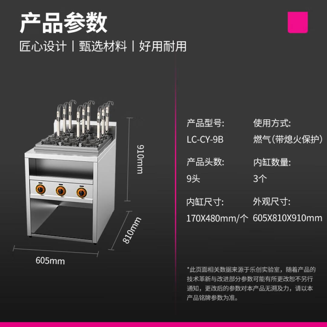 乐创lecon 煮面炉不锈钢立式 商用燃气麻辣烫带熄火保护汤粉面关东煮九头电煮炉 LC-CY-9B