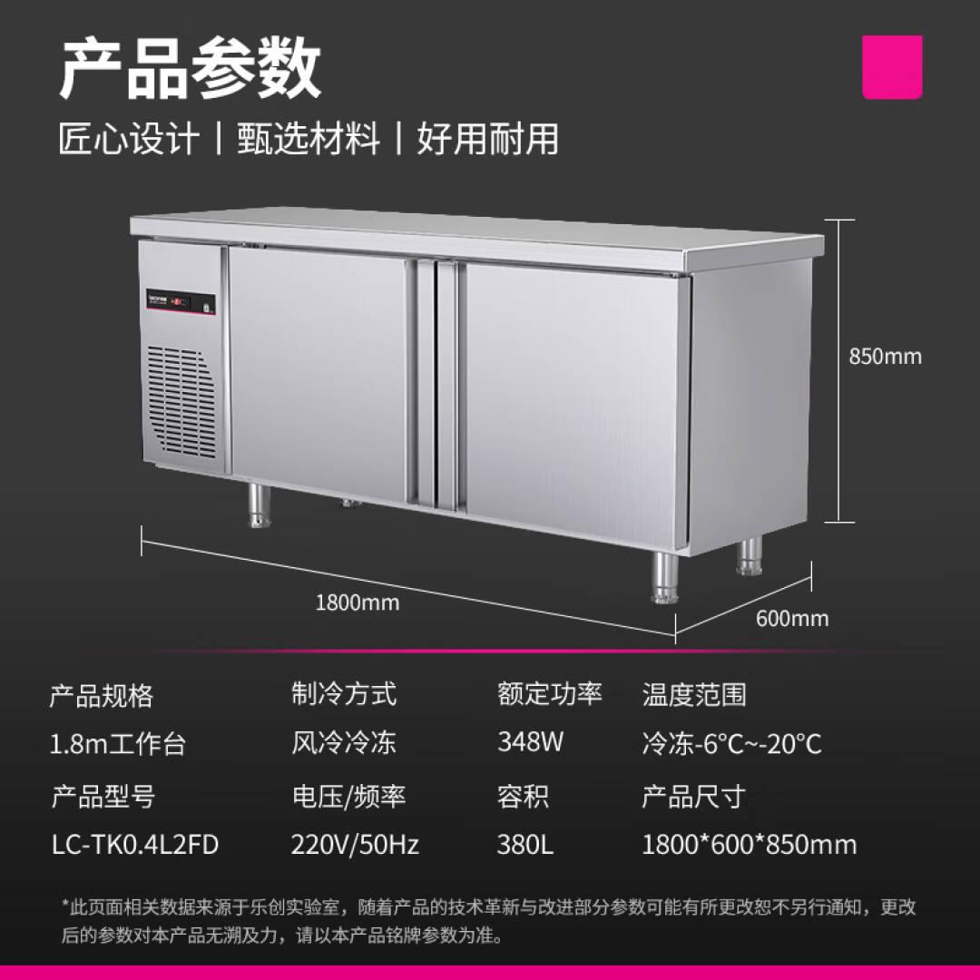 乐创(lecon)商用冷冻工作台保鲜奶茶店设备卧式冰柜厨房平冷操作台1.8*0.6米冷冻风冷冰柜LC-C-TK0.4L2F