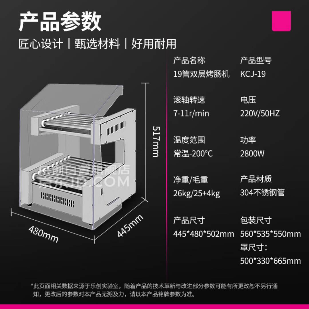 乐创(lecon)商用烤肠机热狗机商用小吃店全自动台式烤火腿肠机 19管304烤管(带罩) KCJ-19
