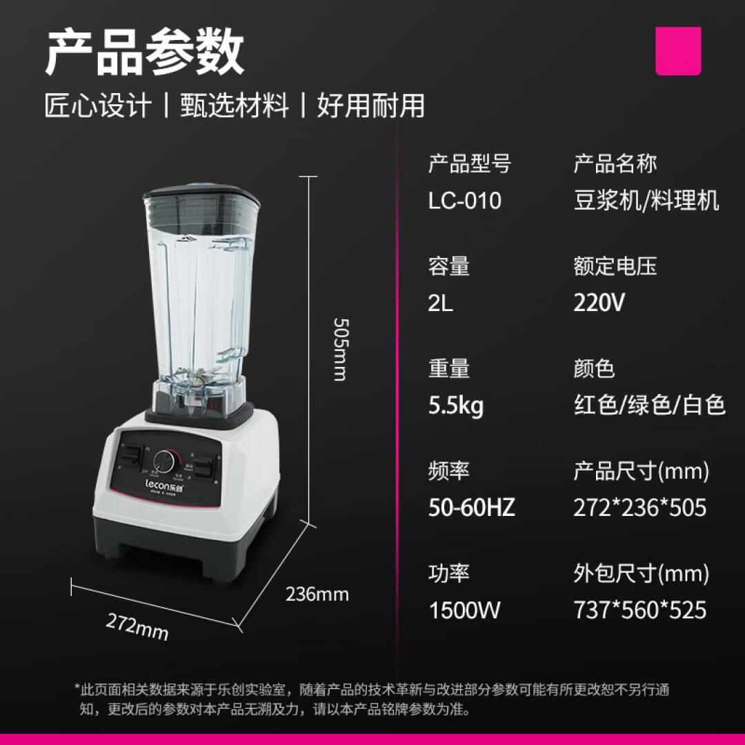 乐创(lecon)商用豆浆机大容量早餐店现磨多功能免滤大功率料理机破壁机 LC-010