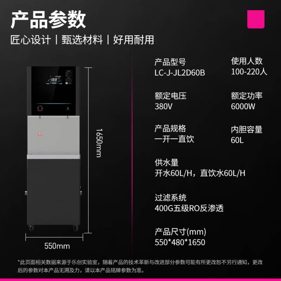 乐创 (lecon)商用直饮水机 120L不锈钢开水器RO反渗透五级过滤饮水机 一开一直饮 LC-J-JL2D60B 单位:台