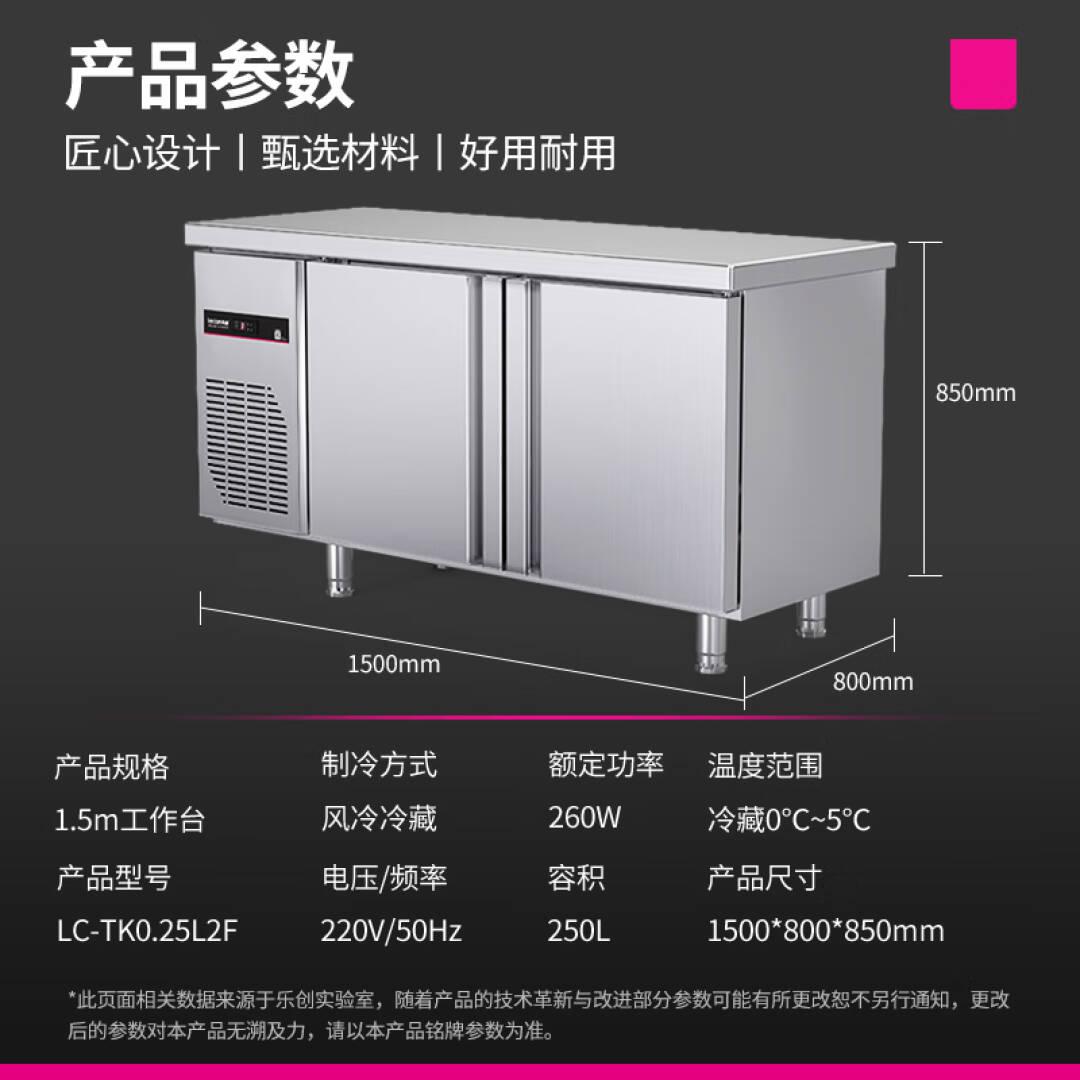乐创(lecon)商用冷藏工作台保鲜奶茶店设备卧式冰柜厨房平冷操作台冰箱1.5*0.8米冷藏风冷LC-C-TK0.25L2F