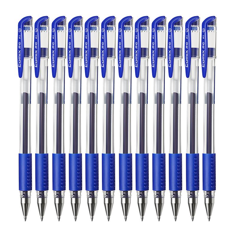齐心 A1 软护手拔帽中性笔 子弹头0.5mm 蓝 12个装