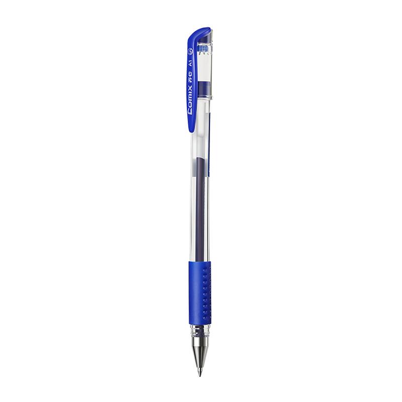 > 齐心 A1 软护手拔帽中性笔 子弹头0.5mm 蓝 12个装