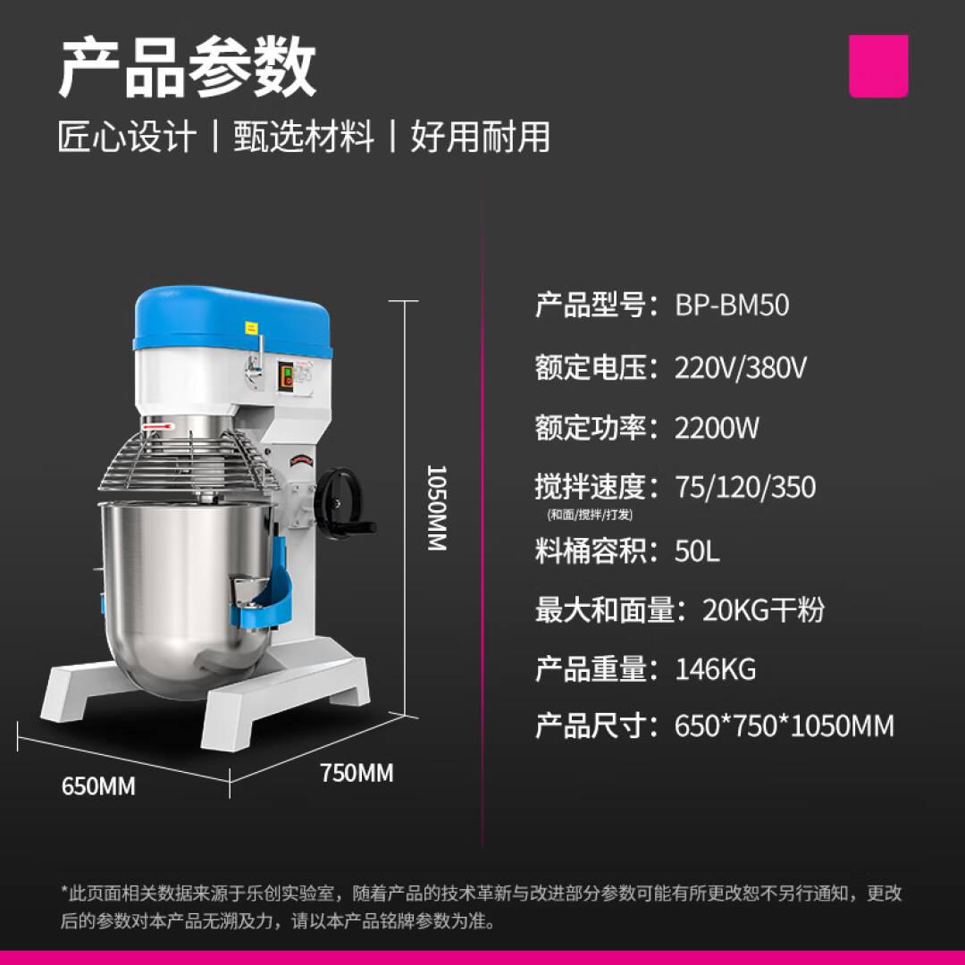 乐创(lecon)和面机商用 搅拌机商用 厨房食堂打蛋机器鲜奶打发奶油厨师机(三合一50L) BP-BM50