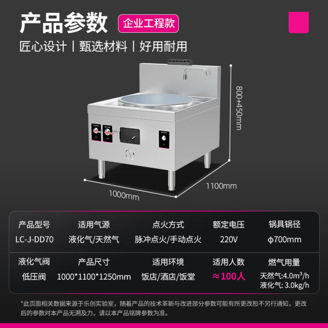 乐创(Lecon)商用燃气单头大锅灶 700型锅径700 天然气/液化气可选酒店饭堂炒灶 LC-J-DD70 单位:台