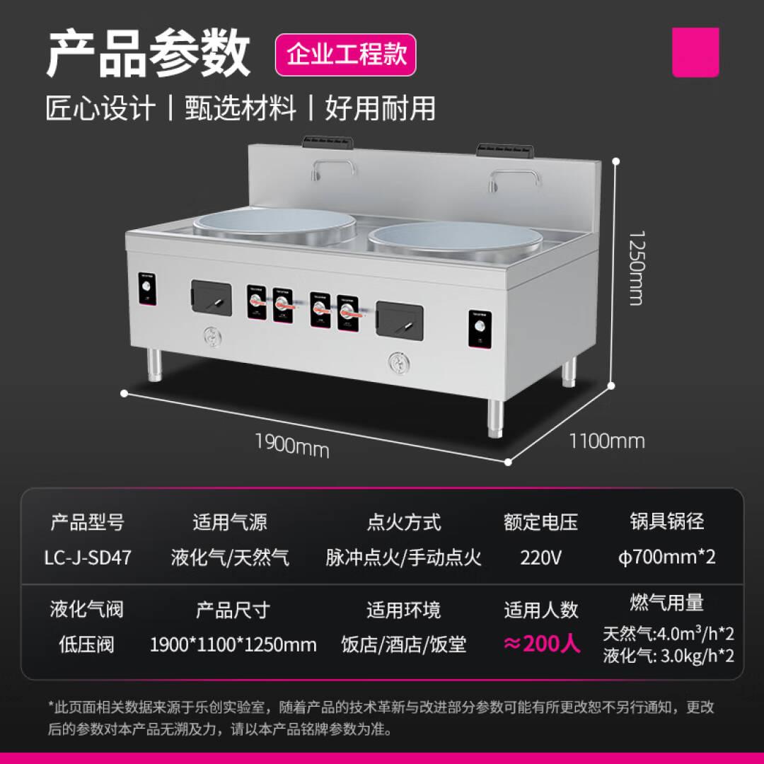 乐创(Lecon)商用燃气双头大锅灶 锅径700 天然气/液化气可选厨房企业炒灶 LC-J-SD47 单位:台