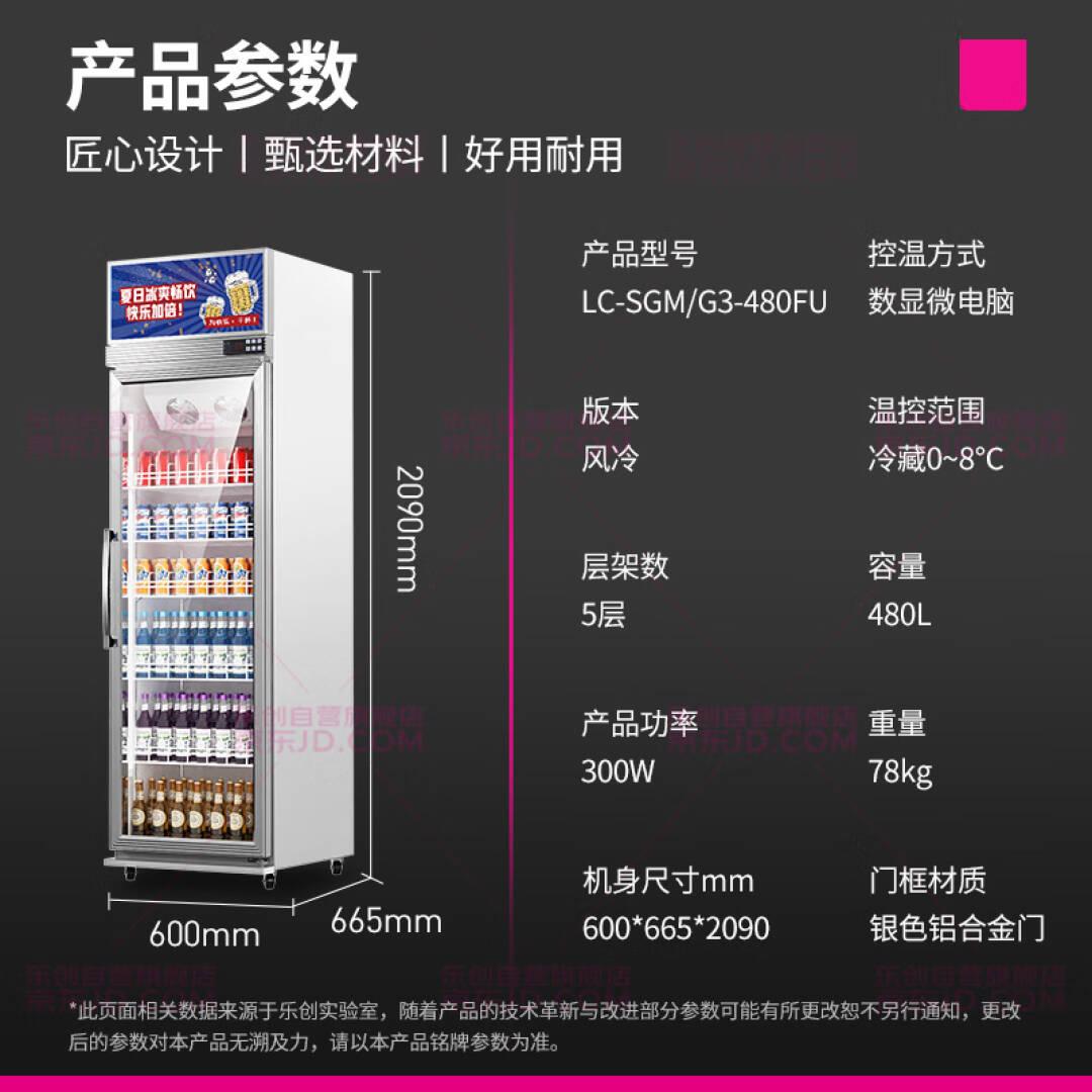 乐创(lecon)展示柜冷藏保鲜柜风冷无霜 冰柜冷藏展示柜便利店连锁啤酒柜单门LC-SGM/G1-480FS