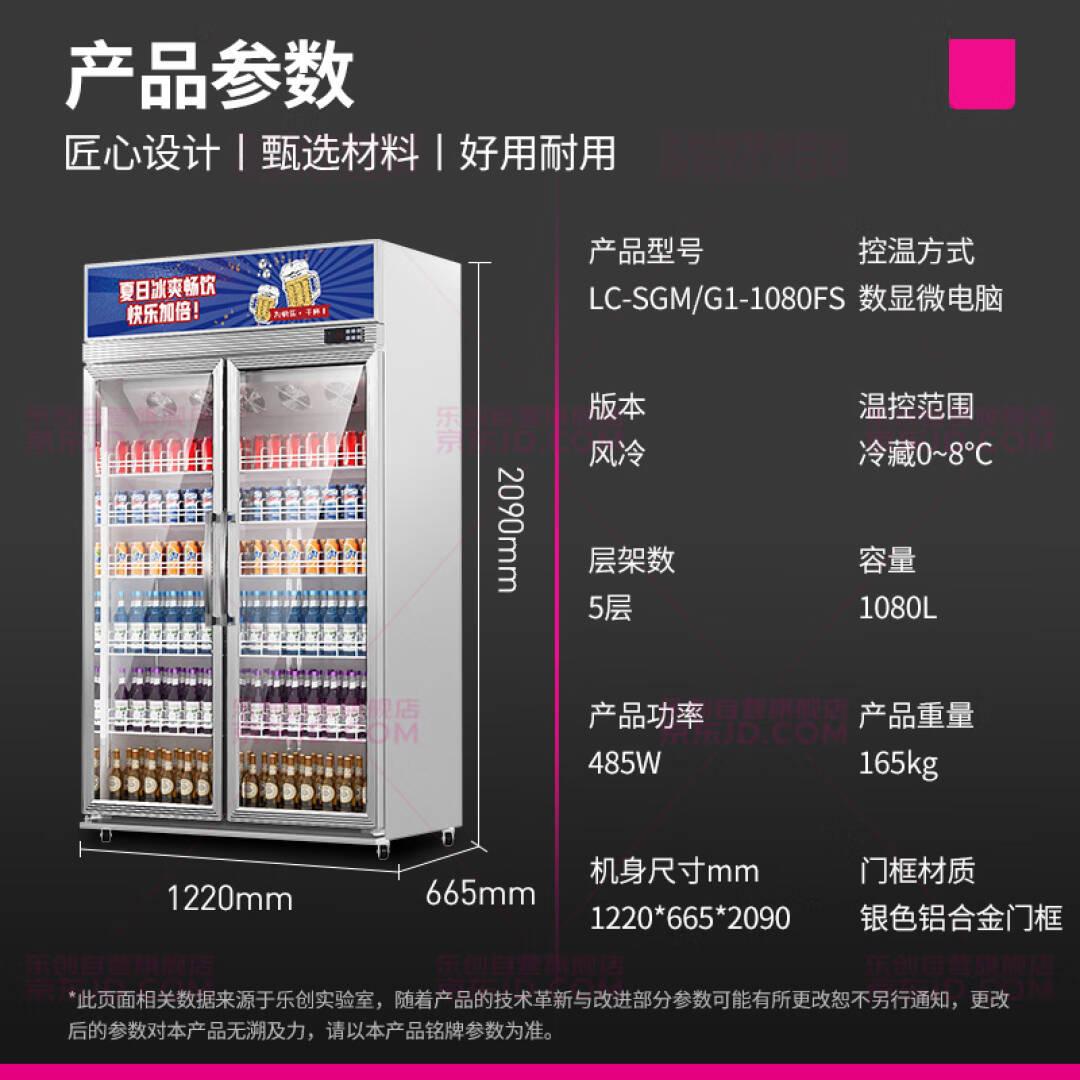 乐创(lecon)冷藏展示柜 风冷展示柜便利店专用饮料柜冰箱展示柜啤酒柜双门LC-SGM/G1-1080FS