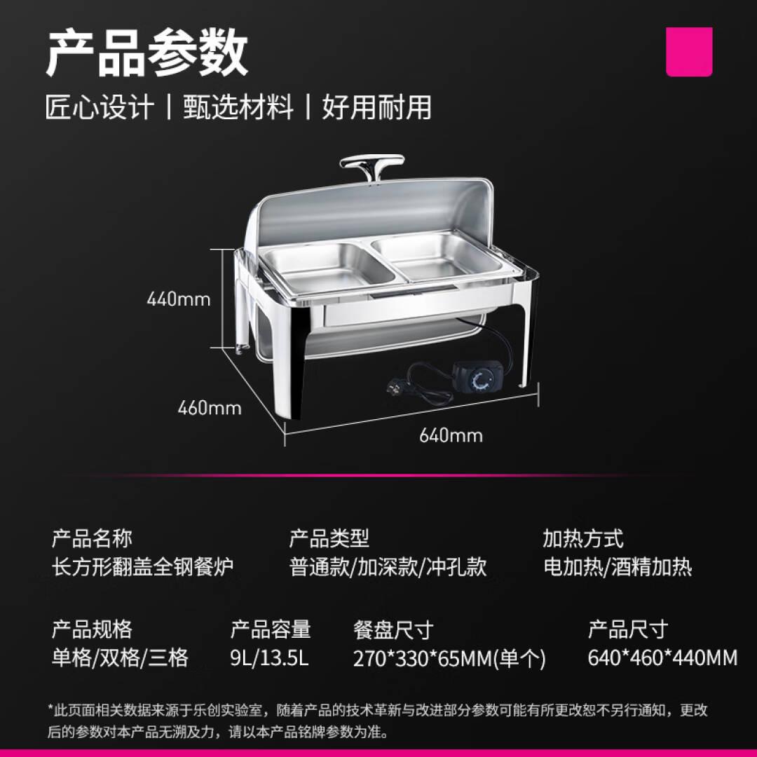 乐创(lecon)自助餐保温炉售饭台酒店餐厅布菲炉 加热炉自助餐炉 双格冲孔9升/电加热 LC-723-3