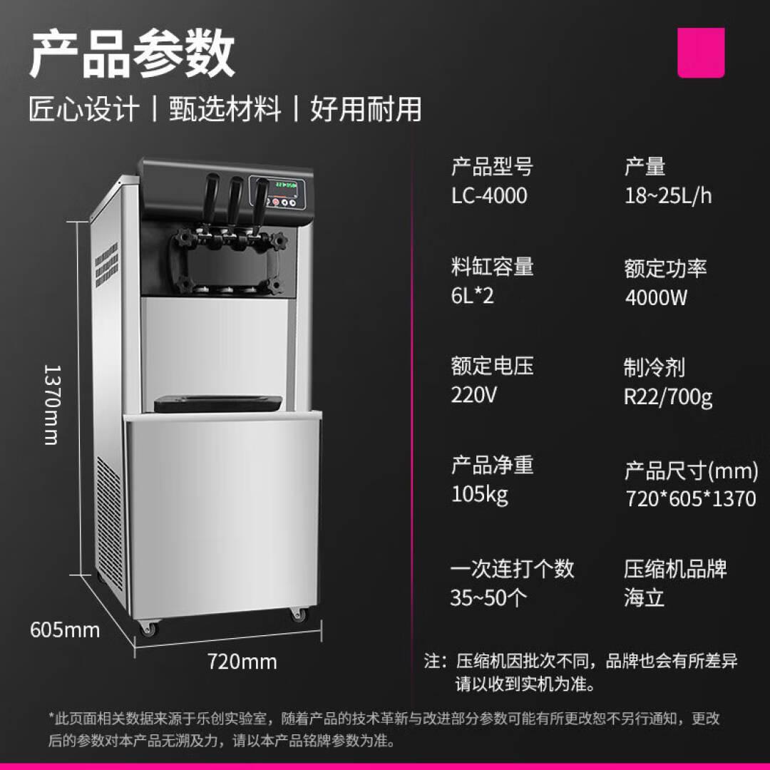 乐创(lecon)冰淇淋机商用 软冰激凌机冰激淋机全自动雪糕机圣代 304不锈钢银色 大产量 LC-4000