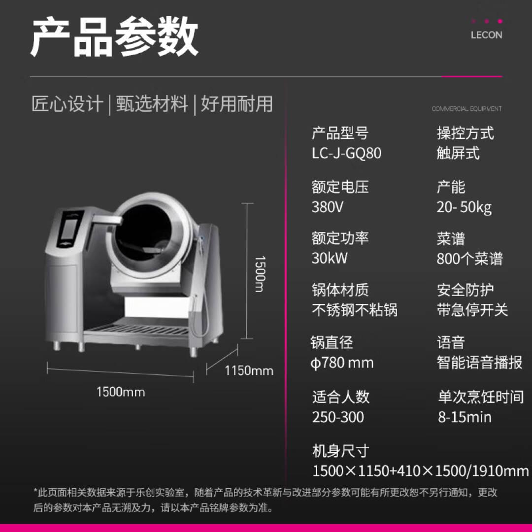 乐创(lecon)全自动炒菜机商用大型厨房智能炒菜设备电动触屏摆臂喷料座地式电磁炒菜机Φ800mm LC-J-GQ80