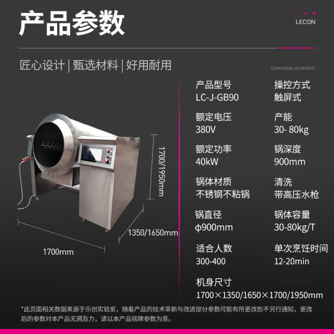 乐创(lecon)全自动炒菜机商用大型厨房智能炒菜设备电动触屏座地式电磁炒菜机Φ900mm LC-J-GB90