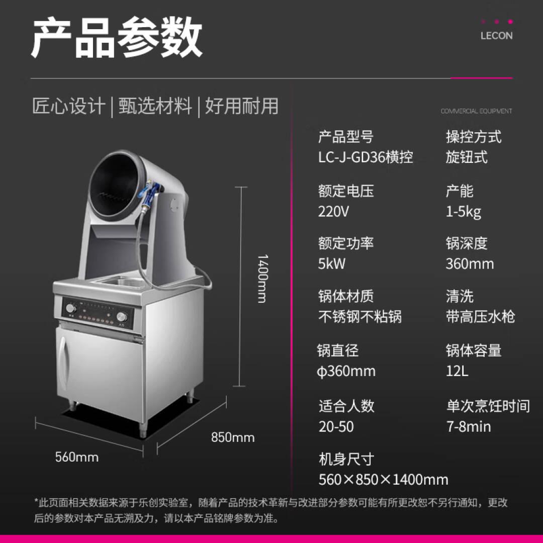 乐创(lecon)全自动炒菜机商用大型厨房智能炒菜设备多功能电动落地式横控电磁炒菜机Φ360mm LC-J-GD36