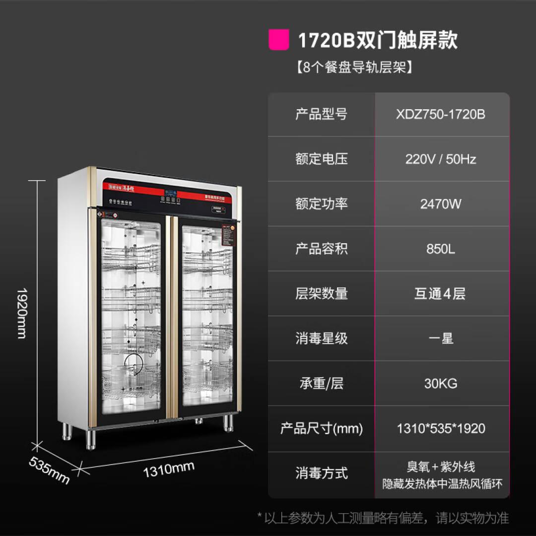 乐创(lecon)消毒柜商用 消毒碗柜双门热风中温消毒柜 8个餐盘导轨层架 XDZ750-1720B