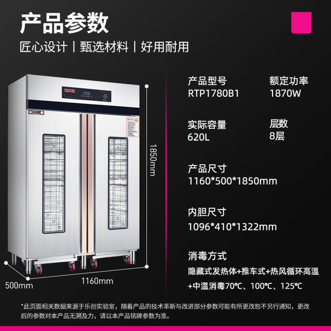 乐创(lecon)商用消毒柜 酒店餐厅玻璃透窗中高温消毒碗柜 四层快餐盘架推车触摸屏款 RTP1780B1