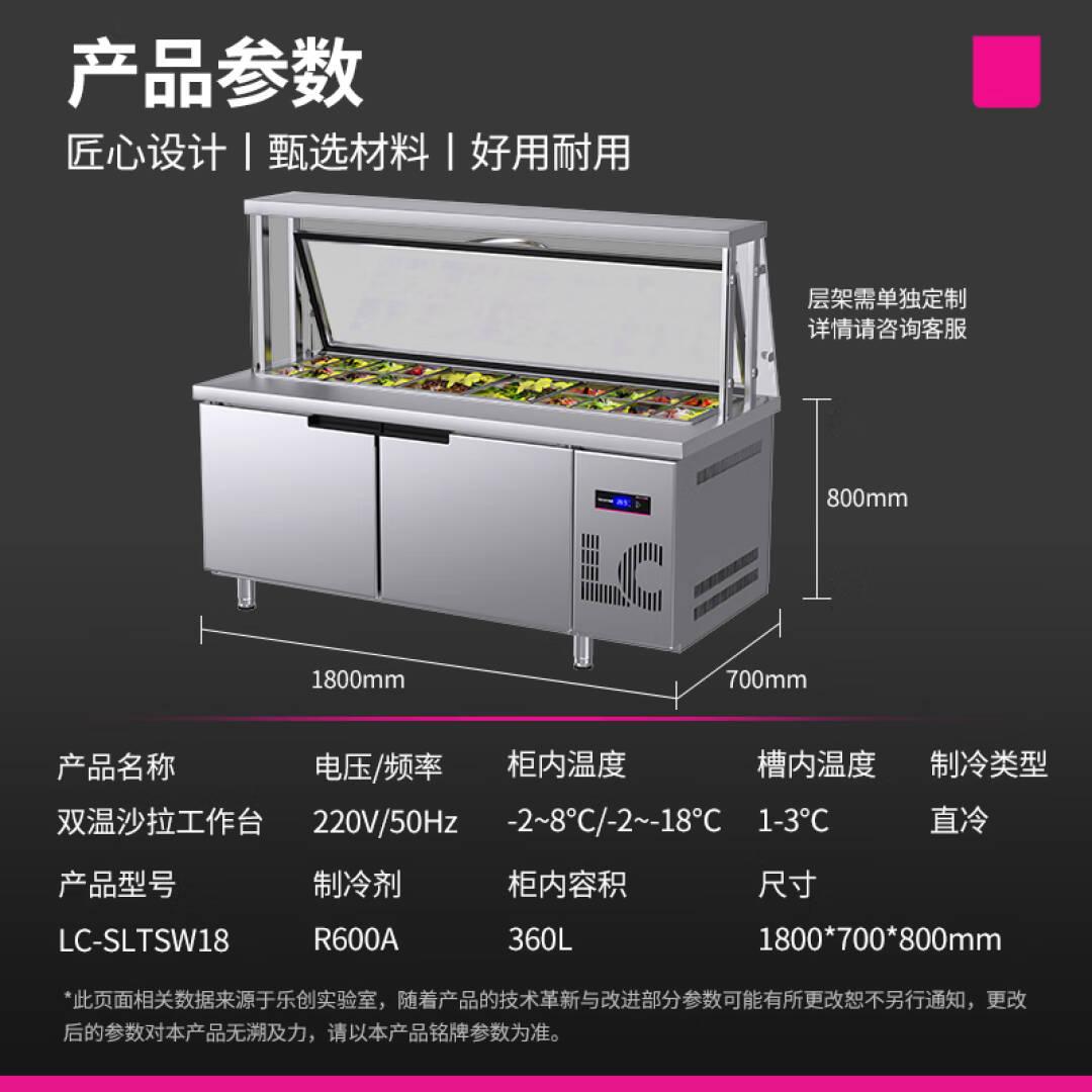 乐创(lecon)商用沙拉台开槽保鲜柜冷藏冷冻工作台冰柜披萨凉菜柜1.8*0.6/0.8*0.8双温(宽度可选)LC-GZT03