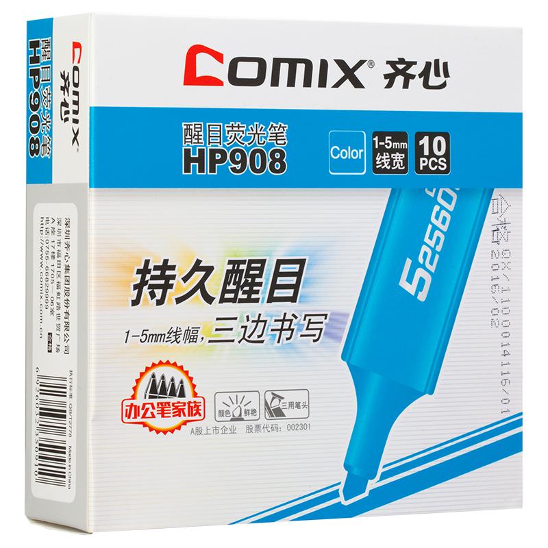 > 齐心 HP908 醒目荧光笔 5.0mm 蓝 10个装