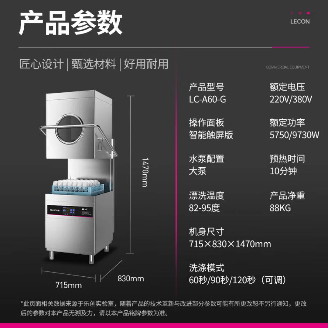乐创(lecon)洗碗机商用揭盖式全自动大型学校食堂酒店餐厅刷碗机 大泵智能款(带窗) LC-A60-G