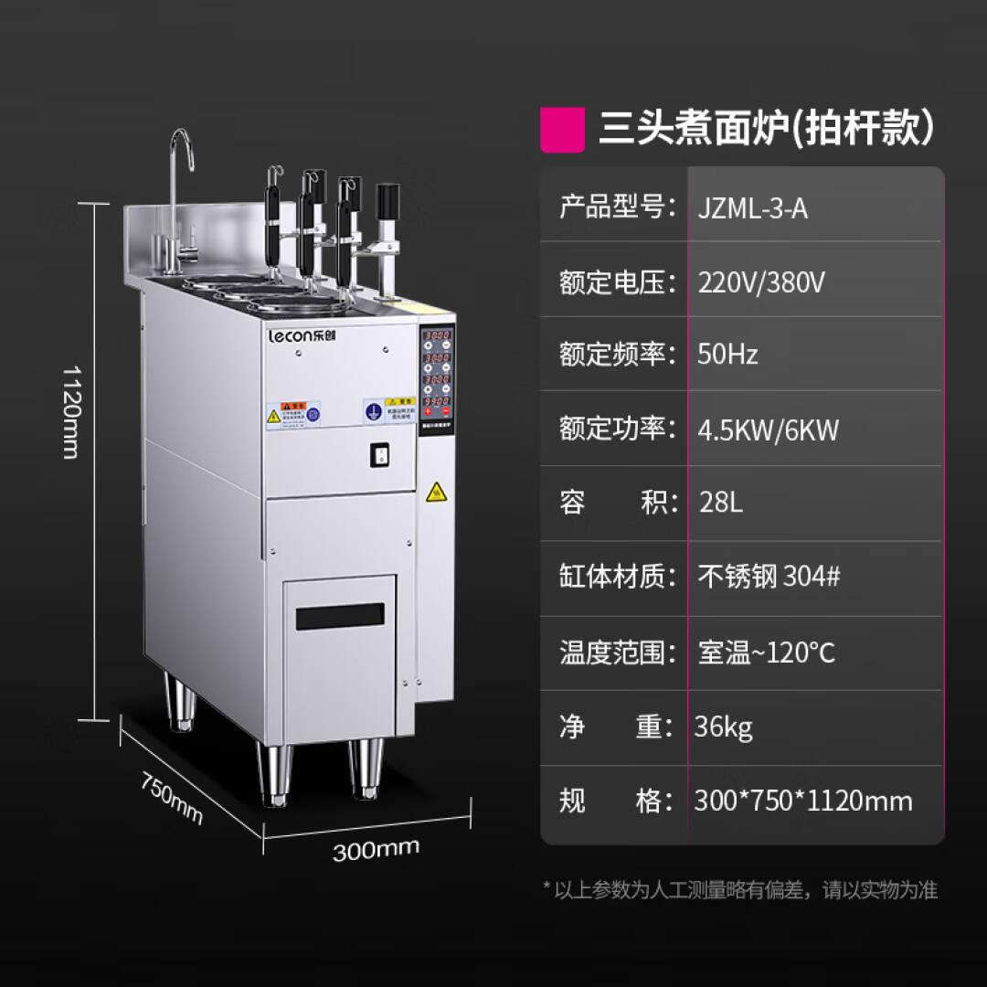 乐创(lecon)煮面炉商用煮面桶商用电大容量不锈钢煮粥麻辣烫煮饺子专用锅3头拍杆LC-JZML-3-A-PG