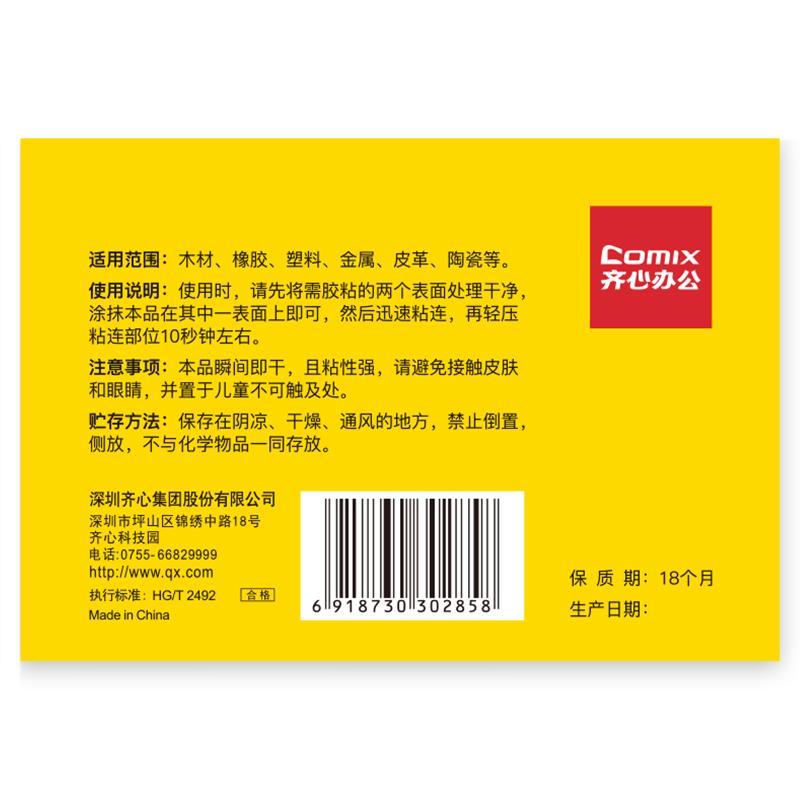 齐心 B2699 502瞬间胶 8g/瓶 10瓶/盒 透明 单位:盒