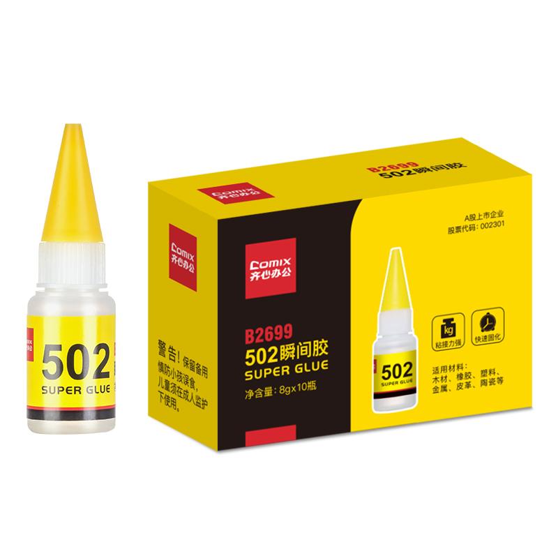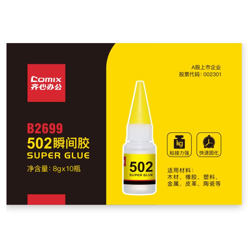 > 齐心 B2699 502瞬间胶 8g/瓶 10瓶/盒 透明 单位:盒