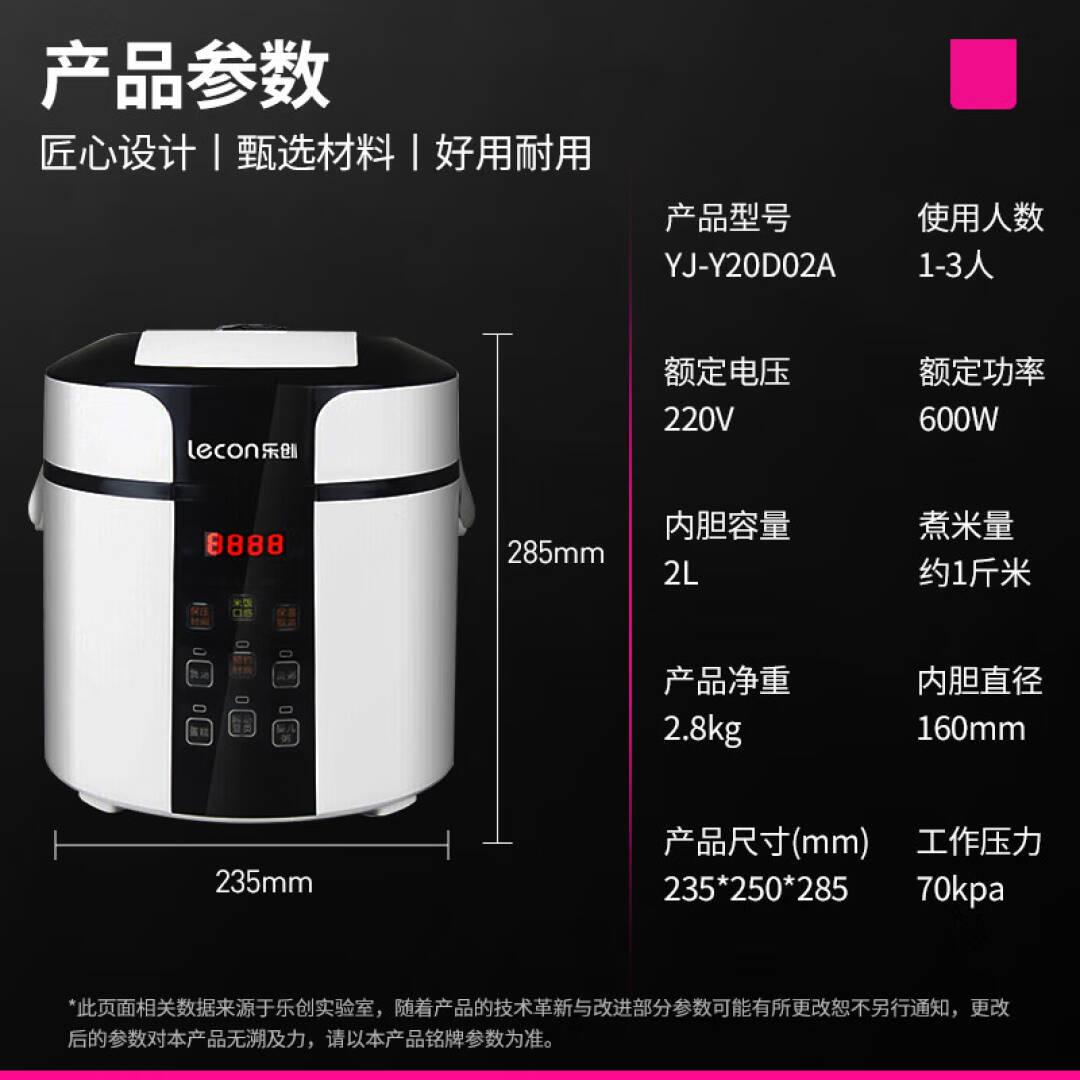 乐创(lecon)电压力锅小型大容量饭店电饭锅食堂用商用电饭煲饭堂熊猫黑白款2L压力锅 SH20-70P1