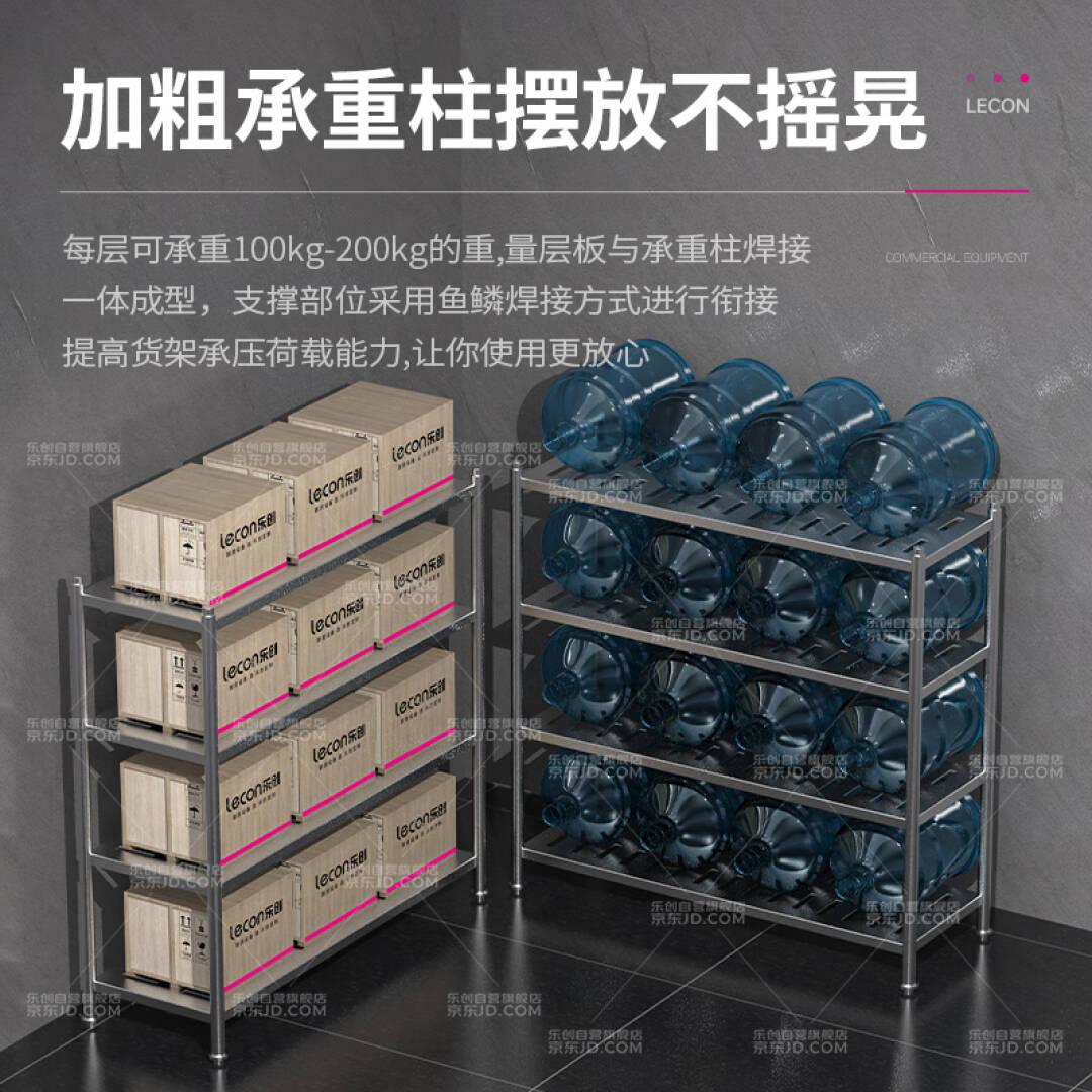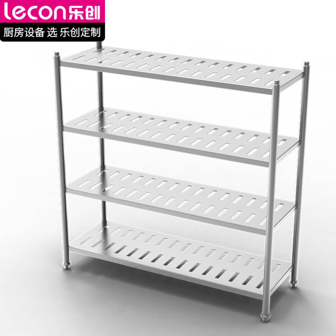 乐创(lecon)商用货架四层201不锈钢组装冲孔储物货架厨房置物架收纳架子1.5*0.5*1.55米 LC-FPR-155