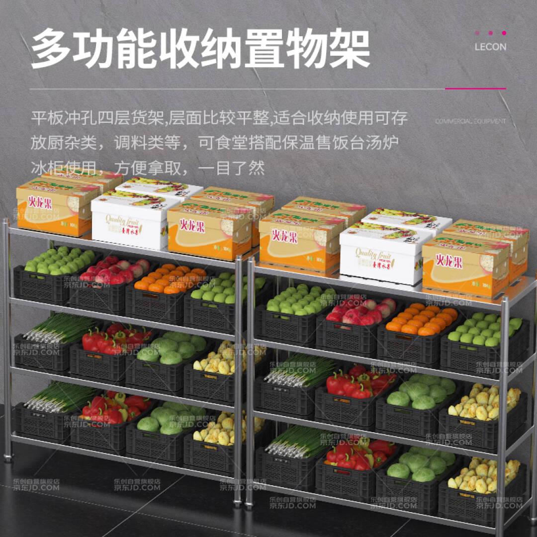 乐创(lecon)商用货架四层304不锈钢组装冲孔储物货架厨房置物架1.5*0.5*1.55米LC-FPR-155S【一价无忧】