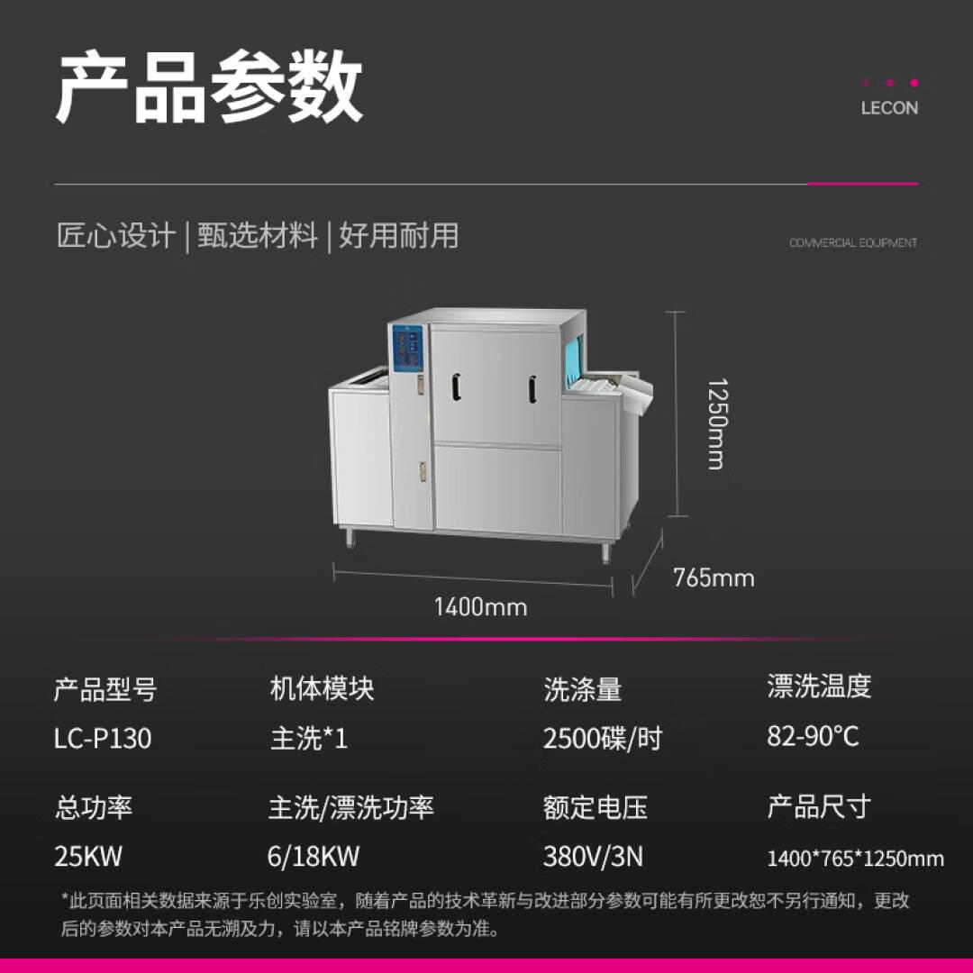 乐创(lecon)商用洗碗机 平铺式自动化大型酒店食堂刷碗机 单缸单喷淋 LC-P130